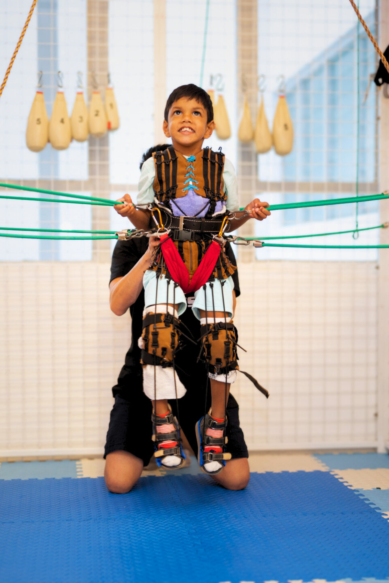 Known globally as suit therapy, the TheraSuit® and NeuroSuit™ programmes use specialised suits with elastic bands to provide external alignment and resistance. The suit uses elastic bands to mimic the body’s own muscular structure with the aim of helping children move with greater control and stability.