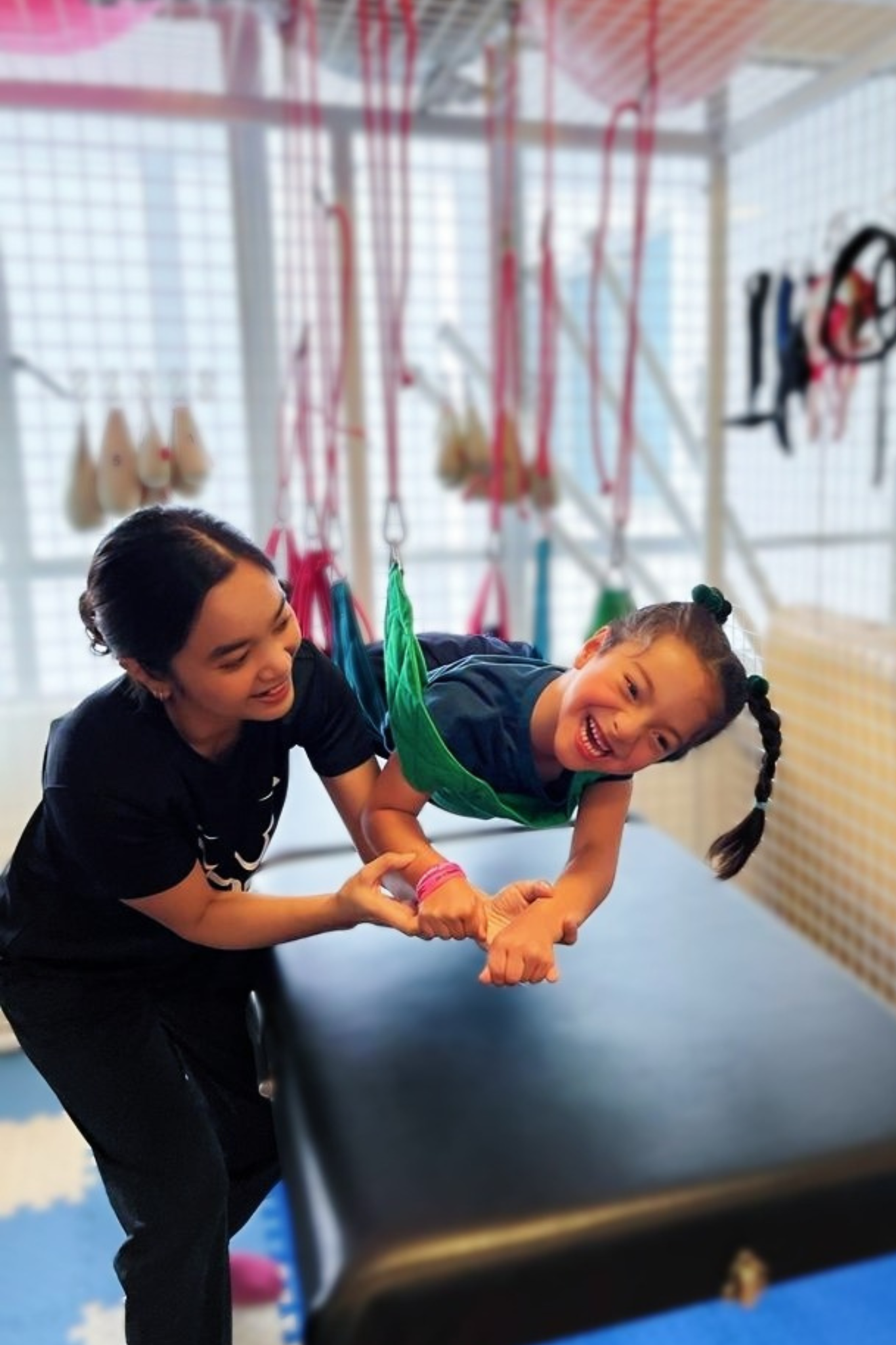 The coaches are knowledgeable and actively adjust the exercises throughout the sessions, tailoring it to our daughter's progress and age. They also provide helpful suggestions on what we can do at home, and stay updated on my daughter's condition & medications to understand how it could affect her response to the exercises.